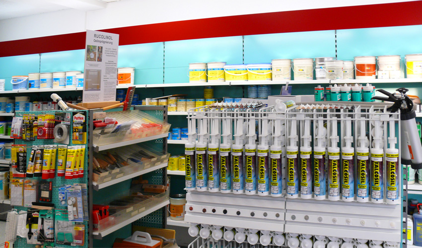 RUCO Vollsortiment, RUCOTINT, RUCO-AQUA, BOSSHARD, KABE, KNUCHEL, SAX, TEKNOS-Lacke, AURO-Naturfarben, BRUNOX Rostschutz, HEMPEL-Bootsfarben, NAUTICO-Bootsfarben,FARROW&BALL Farbtöne, LITTLE-GREEN-Farbtöne, OWATROL, RENUWELL- Holzpflege, PINTASOL, RICO, DECOTRIC, GLUTOLIN, HENKEL/PATTEX, FALCONE Kittprogramm, FEIN Maschinen und Schleifmittel, CIRET/STORCH/ROTA, FESTO, HITACHI, HOLA-HOPHAN, NESPOLI, FRIESS, TECHNO, PPG-MAXICAR, DUPLICOLOR, 3M Werkzeuge und Schleifmittel, SIA-Schleifmittel, SMIRDEX-Schleifmittel, PERMAPACK-Sortiment, TESA-Produkte,